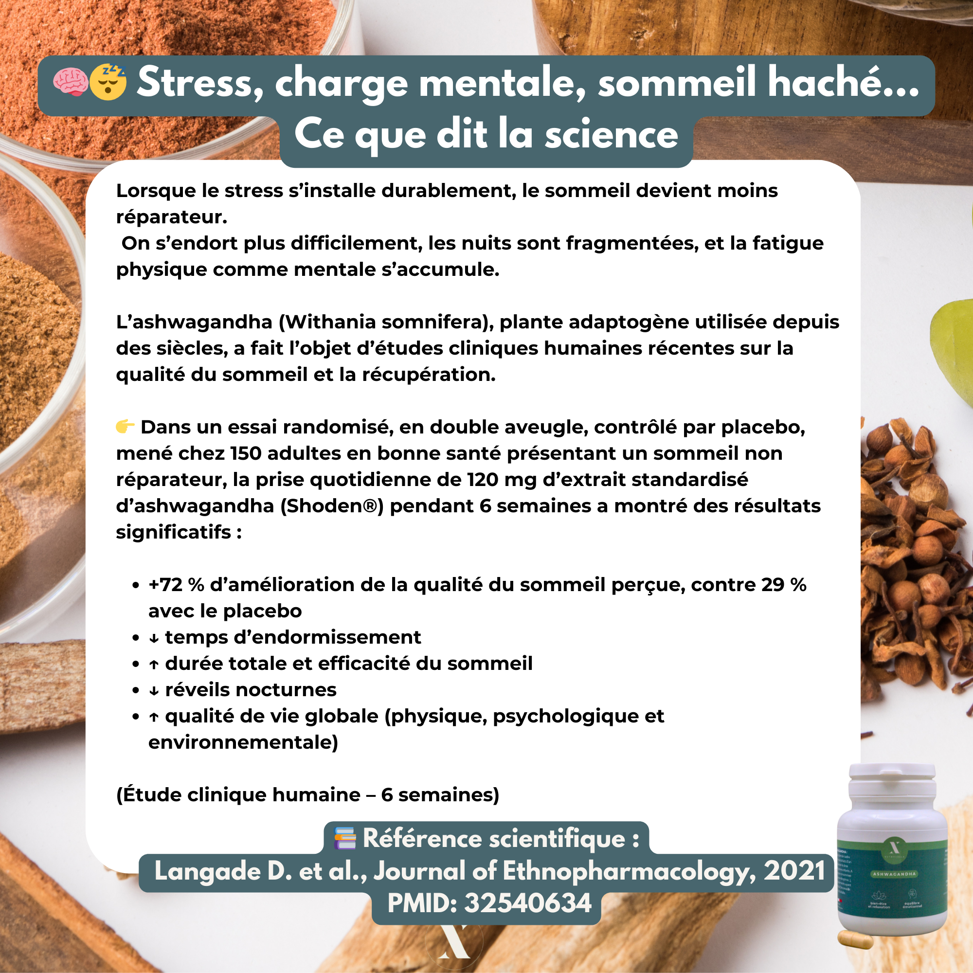 📌 😴 Ashwagandha → Qualité du sommeil +72 %, meilleure efficacité et latence raccourcie (essai humain)