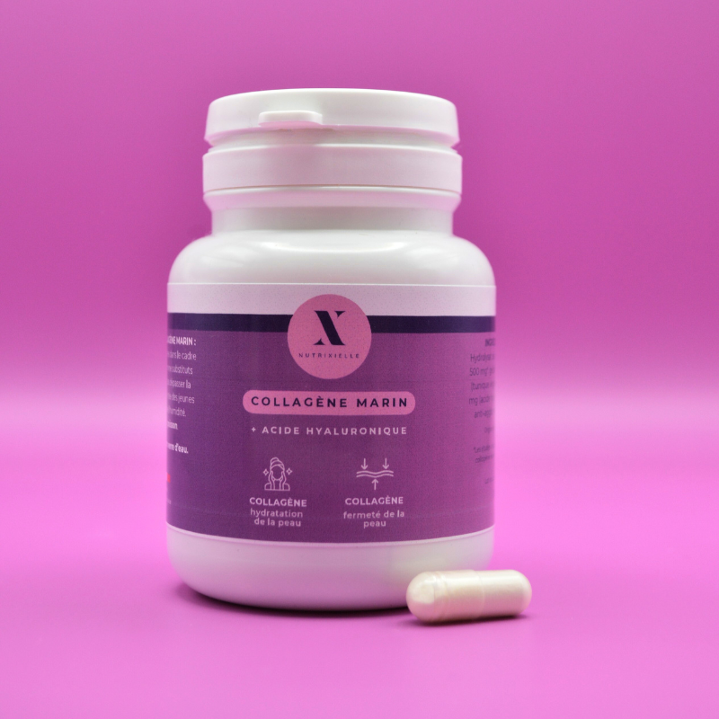 Le collagène Nutrixielle est associé à l’acide hyaluronique, ce qui renforce l’hydratation profonde et l’élasticité de la peau.